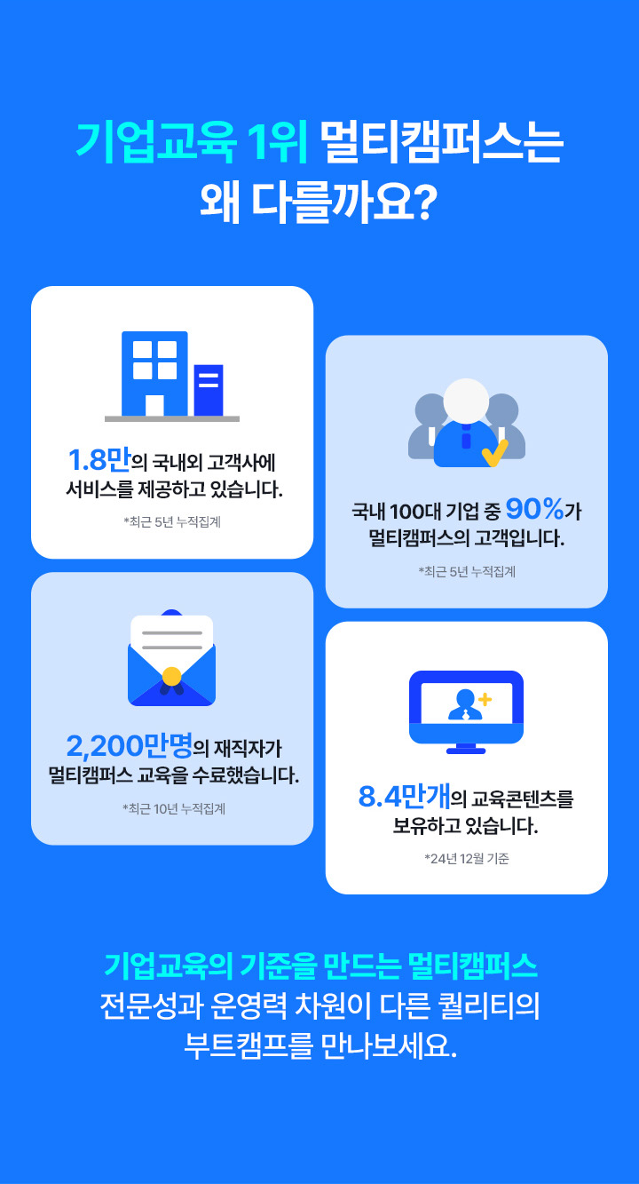 멀티캠퍼스 부트캠프 홈페이지에서 과정 신청이 완료되면 이후 선발 절차 안내를 위해 매니저가 개별 연락을 드리고 있습니다.