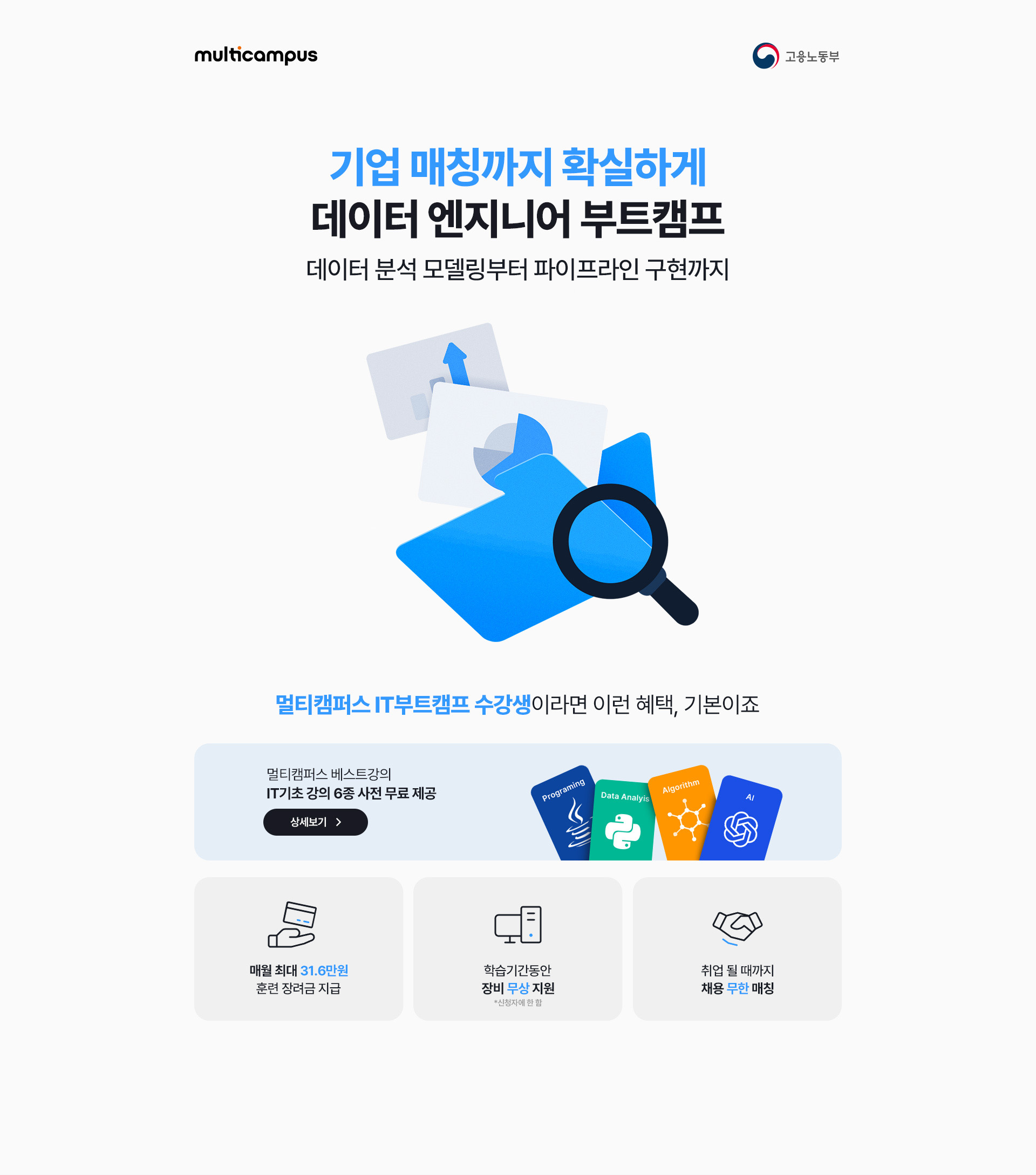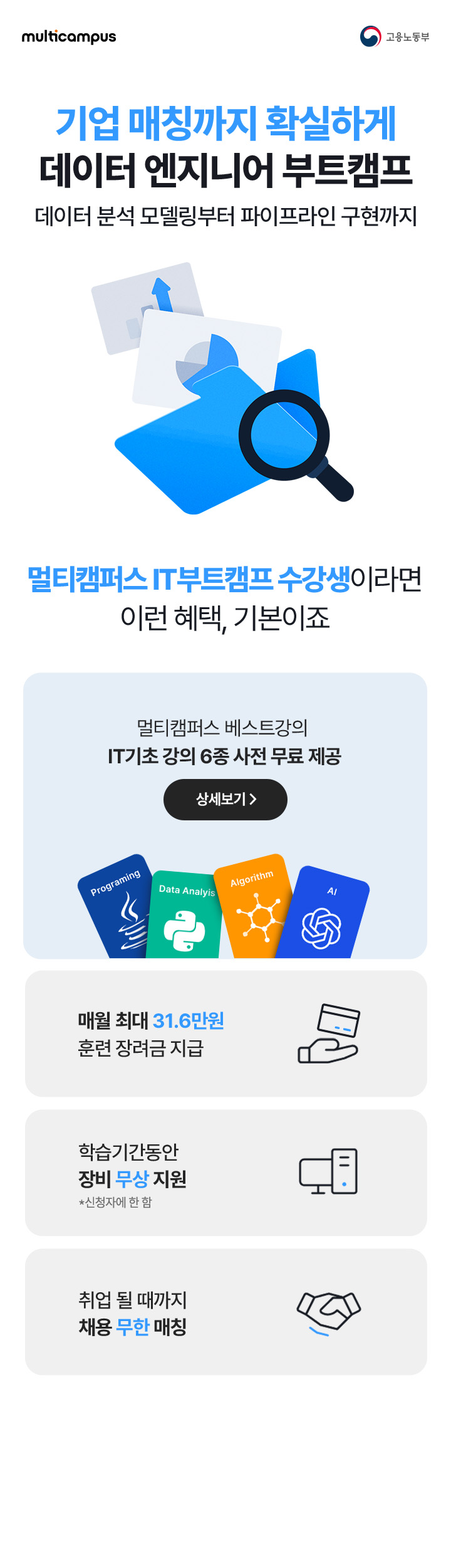 *멀티캠퍼스 메일/SMS/전화 수신 동의를 하시면, 다양한 혜택과 이벤트/신규 과정 등의 정보를 빠르게 만나실 수 있습니다. 단, 신청 완료 및 강의 관련 정보는 수신 동의와 상관 없이 자동 발송 됩니다.