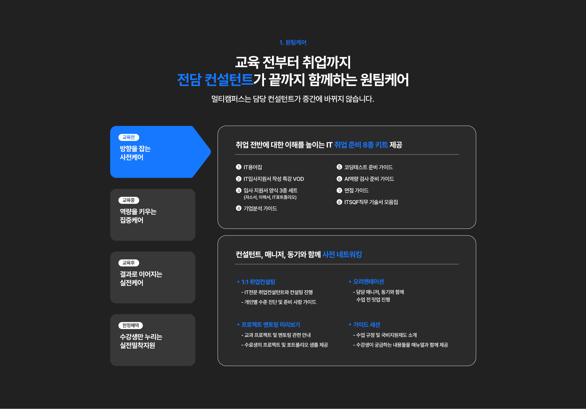 신청페이지에서 과정 신청이 완료되면 안내를 위해 매니저가 순차적으로 개별 연락을 드리고 있습니다.