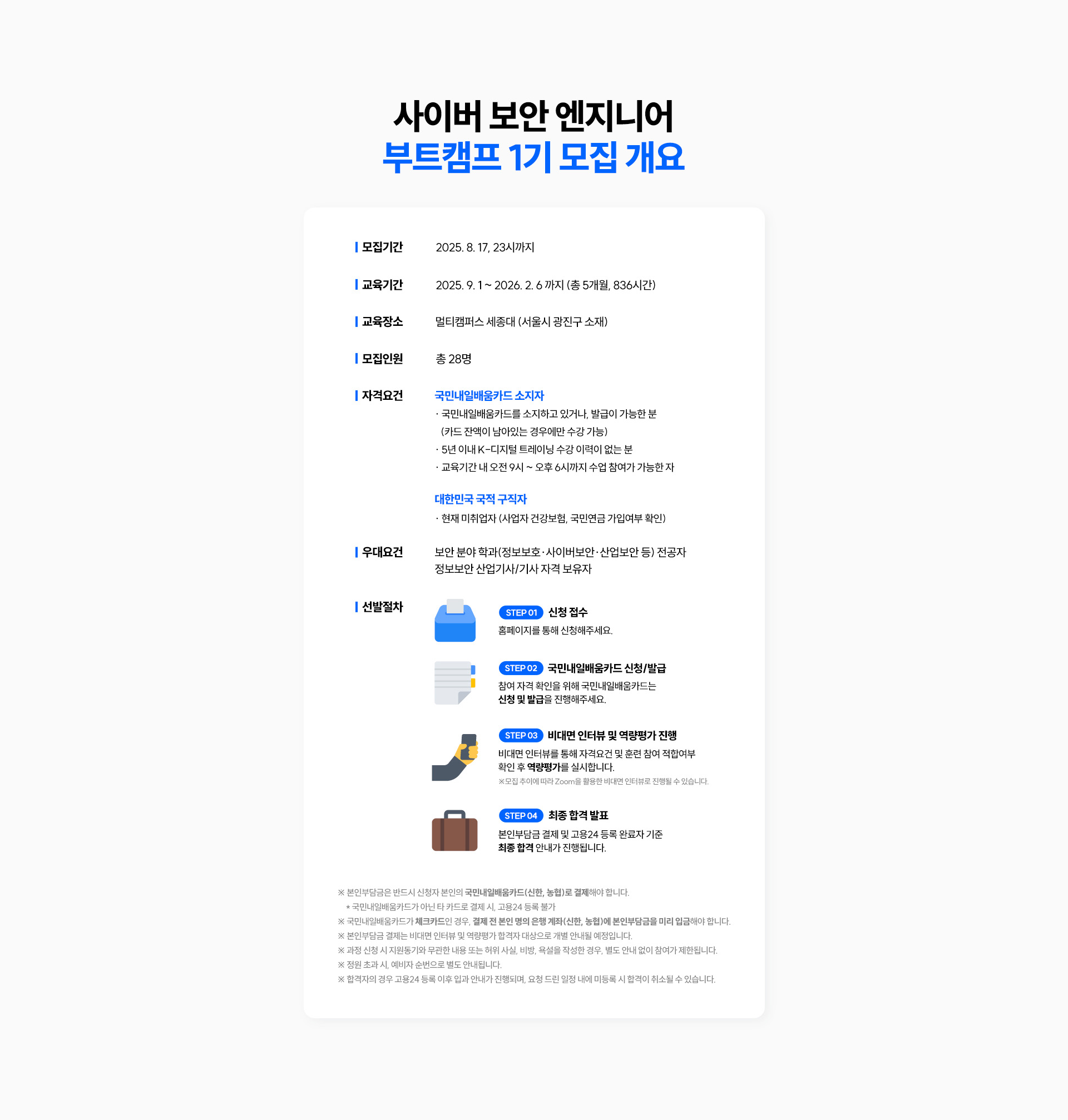 *멀티캠퍼스 메일/SMS/전화 수신 동의를 하시면, 다양한 혜택과 이벤트/신규 과정 등의 정보를 빠르게 만나실 수 있습니다. 단, 신청 완료 및 강의 관련 정보는 수신 동의와 상관 없이 자동 발송 됩니다.