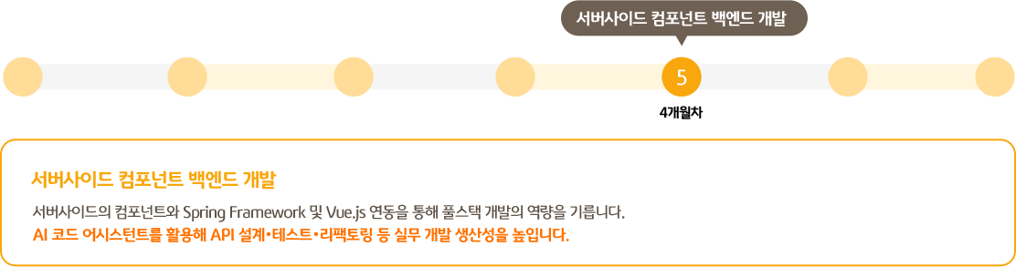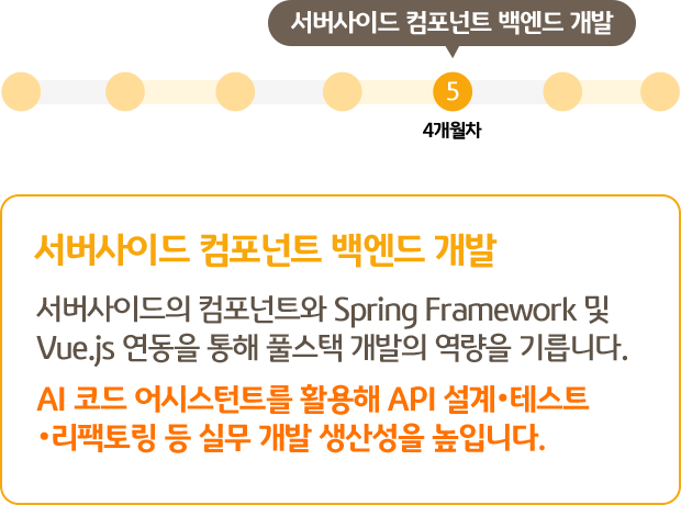 4개월차 : 서버사이드 컴포넌트 백엔드 개발 - 서버사이드의 컴포넌트와 Spring Framework 및 Vue.JS 연공을 통해 풀스택 개발의 역량을 기릅니다.