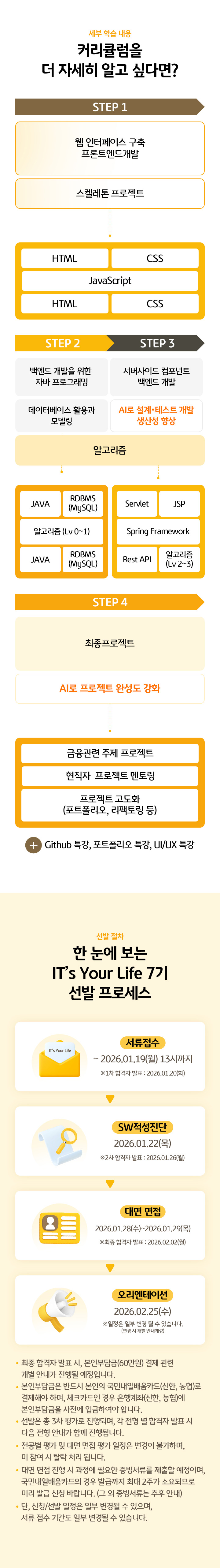 금융권 맞춤 교육 : 최종적으로 백엔드 서비스 개발을 위한 Java 기반 프로그래밍 능력을 기를 수 있어요.